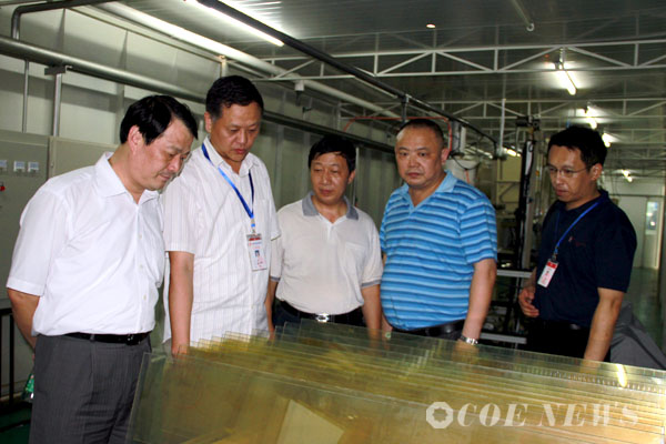 ????? 8月9日下午15:40分,蚌埠玻璃工業(yè)設(shè)計研究院院長彭壽一行蒞臨公司檢查指導工作并進行了座談。公司董事長兼總經(jīng)理侯仁義、常務副總謝義成、副總經(jīng)理兼總工程師葛林、行政副總經(jīng)理劉家林、財務總監(jiān)王泓濤等陪同參觀檢查,雙流縣副縣長廖維忠、雙流縣新能源推進辦主任蒲貴森等參加座談。