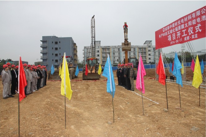 ????? 4月11日上午8時,成都中建材光電材料有限責任公司(下稱“成都中建材”)舉行了年產(chǎn)80兆瓦碲化鎘薄膜太陽能電池生產(chǎn)線項目土建工程全面開工儀式。